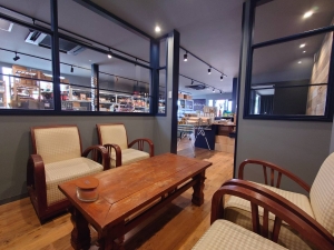 床には足場材を使用し、アメリカンな雰囲気に✨